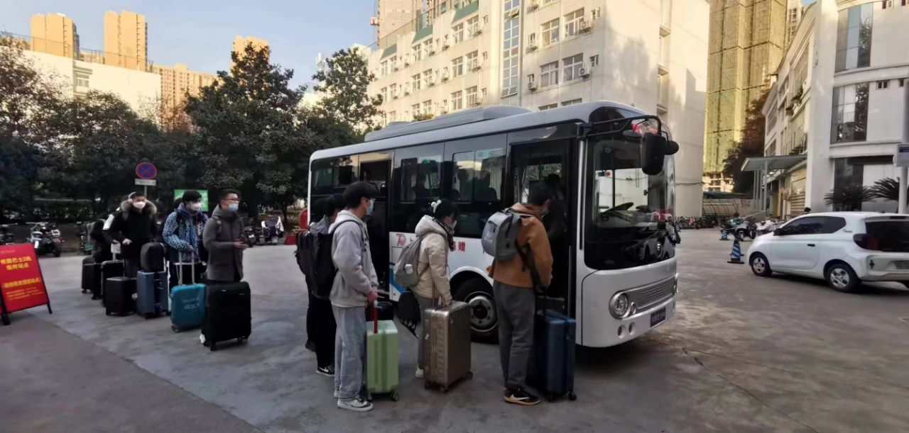 为保障学生顺利安全返乡,总务后勤处学术交流服务中心开通“三站一场”护送专线:自12月7日起,每天5:30-17:00安排4至5班专线车,学生线上提前预约,免费乘坐,实现车站和学校无缝衔接,尽量减少学生旅途感染风险。