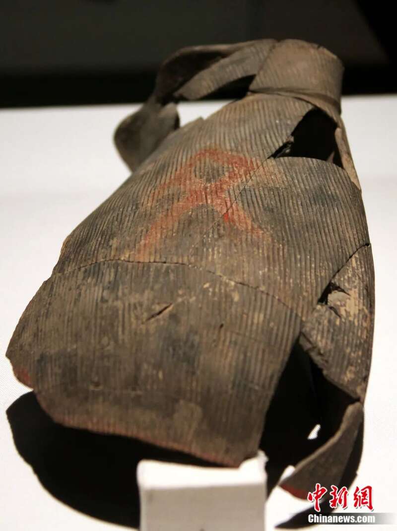 山西省襄汾县陶寺遗址出土的4000年前毛笔朱书文字“文”,其年代早于甲骨文。孙自法 摄