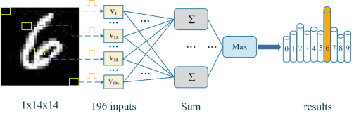 在多态模型设计方面,门控忆阻器比传统的二端忆阻器具有明显的优势。目前由于难以实现大规模集成,开发一种灵活的门控忆阻仿真器对于探索神经网络的各种可能应用至关重要的。然而,现有的门控忆阻器模型缺乏灵活性和可移植性。团队进一步提出了一种门控忆阻器的新型FPGA模型,在Xilinx XQ7Z020芯片上进行了验证,硬件资源利用率低于1%。并提出了一种利用器件电导局部线性特性构建多重累积电路结构的新方法。此外,在MNIST数据集上验证了基于该模型的四态量化单层感知器。实验结果表明,该电路对10000张MNIST图像的识别精度达到87.6%,与PyTorch的结果仅相差0.03%。