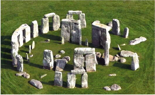 当然,更神秘的是一些体量巨大的史前遗址,比如屹立在英国伦敦西南100多公里的索尔兹伯里平原上的巨石阵。它的主体由几十块巨大的石柱组成,这些石柱排成几个完整的同心圆,巨石阵的外围是直径约90米的环形土沟与土岗,内侧紧挨着的是56个圆形坑。神奇的是,它的主轴线、通往石柱的古道和夏至日早晨初升的太阳,在同一条线上;另外,其中还有两块石头的连线指向冬至日落的方向。