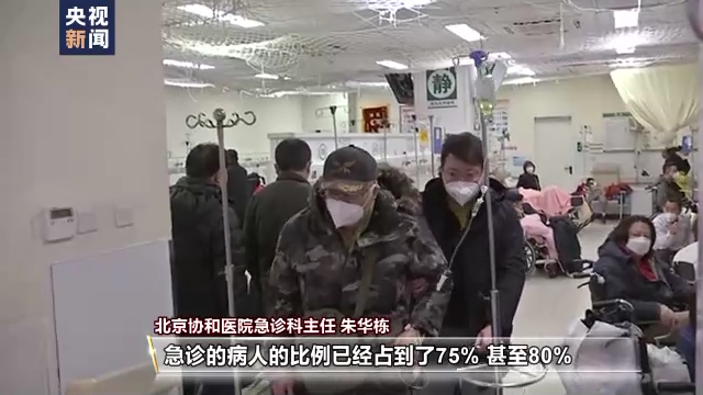 北京协和医院急诊科主任 朱华栋:我从医大概有30来年了,可以说是最困难的一个时候。病人量多,还有危重程度也超过平时。像在以往的话,一、二、三级占的比例平均平时的话也就是在50%左右。最近这几天我们监测到一、二、三级这些急诊的病人比例已经占到了75%,甚至80%,危重病人的比重高,可以说这是一个前所未有的挑战。