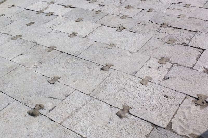 宋建:我根据管钻探到的铁锭榫,它是古建筑里边很重要的建筑材料,主要连接石材拼缝的地方,所以我认为地底下的遗迹不可能是近现代的东西,肯定是古代的。我汇报完以后,时任文管委副主任的汪庆正先生也认可铁锭榫的价值,因为铁锭的形状跟古代的银元宝很相像,他也认为这个东西所属年代不会晚。但是这个事情又很复杂,一则遗址埋藏在地下7米深,再则这块土地已经拍卖给房地产开发商,所以他也很难拍板,于是他就跟我说,我交给你个任务,你在7天之内把遗址的年代、性质搞清楚,得出一个初步结论进行汇报。