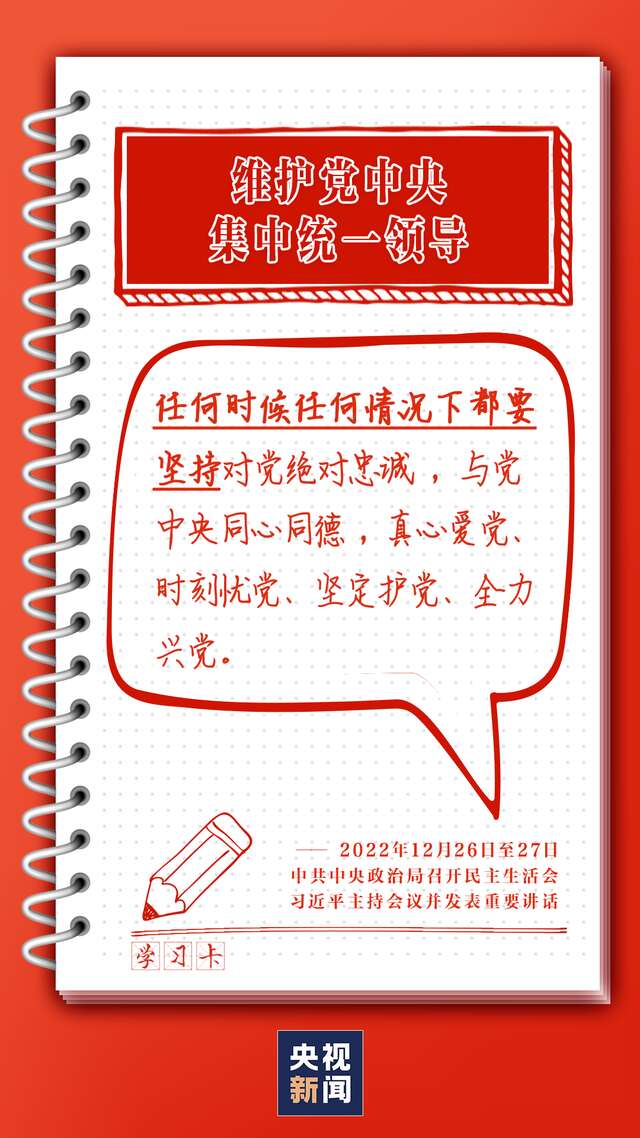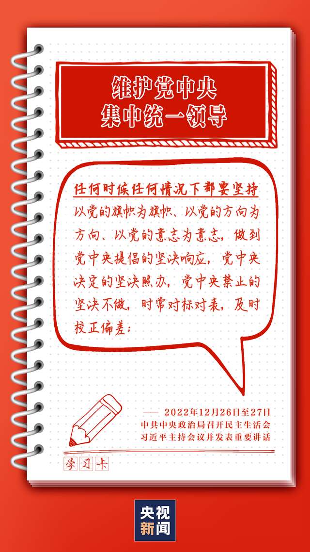 中共中央政治局于12月26日至27日召开民主生活会,中共中央总书记习近平主持会议并发表重要讲话。在讲话中,总书记就维护党中央集中统一领导、履职尽责担当作为对各级领导干部提出具体要求。