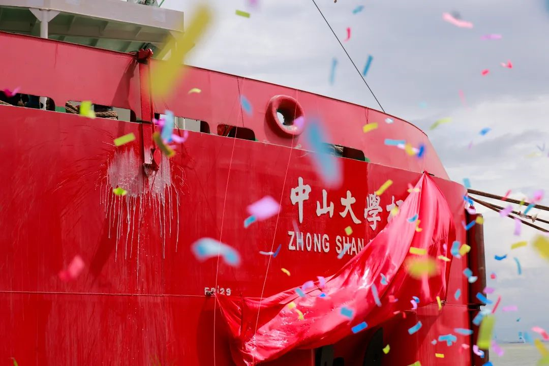 命名仪式上,揭开命名布后的“中山大学极地”号