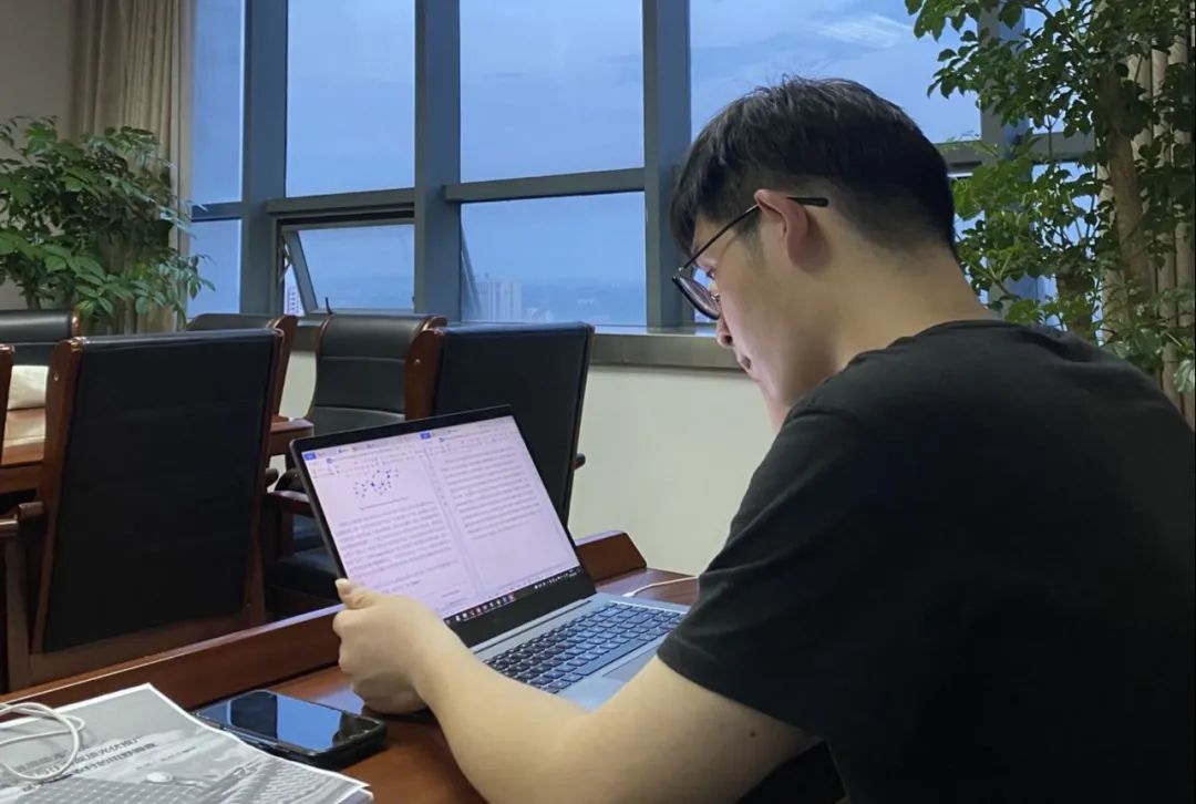 虽然课程任务繁重,但他坚持每天挤出固定的时间阅读文献,构思研究思路,敲代码、写论文,一张书桌一台电脑就是他的一方天地。