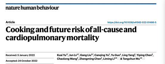 然而,使用不同能源的做饭行为对居民的健康影响如何?烹饪相关的健康效应由什么因素介导?针对以上问题,该团队持续展开研究。12月8日,相关成果“Cooking and future risk of all-cause and cardiopulmonary mortality”发表于 Nature Human Behaviour。华中科技大学公共卫生学院喻快副研究员、刘刚教授和北京大学公共卫生学院吕筠教授为该文的并列第一作者。