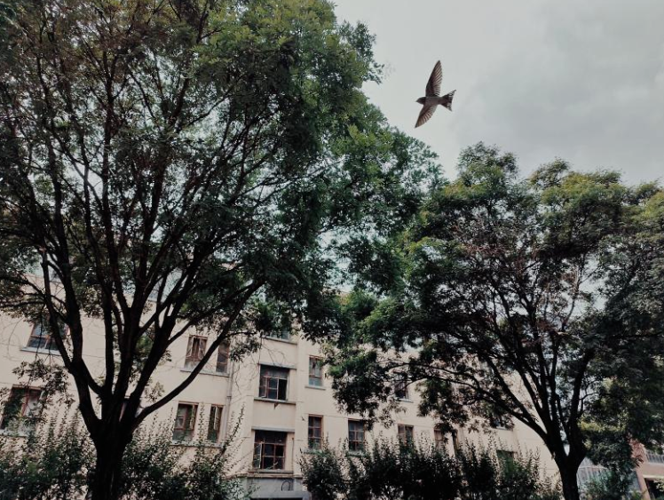 西北的天是灰蓝的天,草木相接,映着楼宇屋檐。进兰大的第一天,飞鸟举翼盘旋,送我恢宏祝愿。到处都是陌生的,那又如何,我知道未来不远。