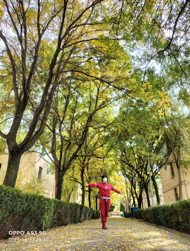 拍这张照片的时候,当时咱们静默了一周,解封了,我去搞卫生拍的,心情特别激动,感觉自己特别开心,看到这个秋天的叶子,感觉自己自由了。