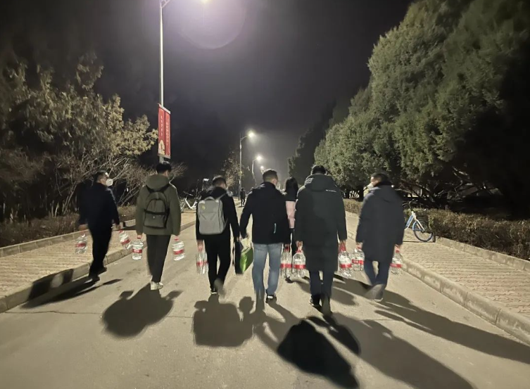 研究生考试前一晚,我们来到榆中布置考场,回宿舍时每人手里都拎着两桶5升的水,怀着忐忑的心情,共同期望明天的考试顺利进行。这不经意的一张照片,却把今年考研准备工作直观的体现出来。疫情来势汹汹,一边研招一边抗疫,经历了前所未有的两次大规模借考…负重前行时,还好有并肩作战的战友们,在一起。