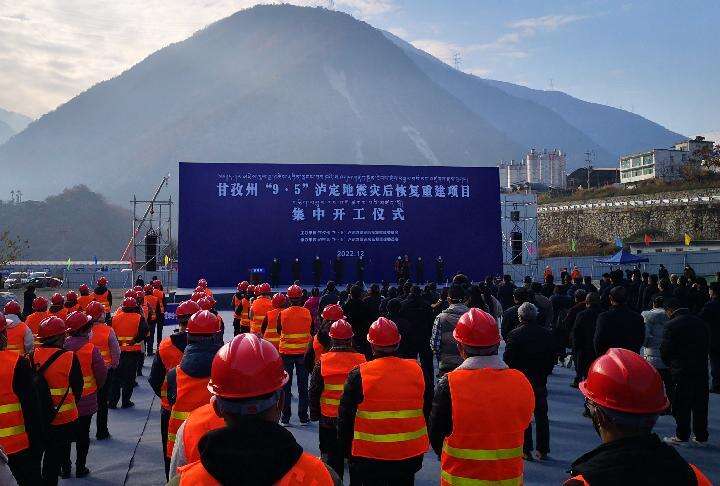 12月23日,四川甘孜藏族自治州“9·5”泸定地震灾后恢复重建项目集中开工仪式在泸定县德威镇下奎武村举行。新华社发(罗楚凯 摄)