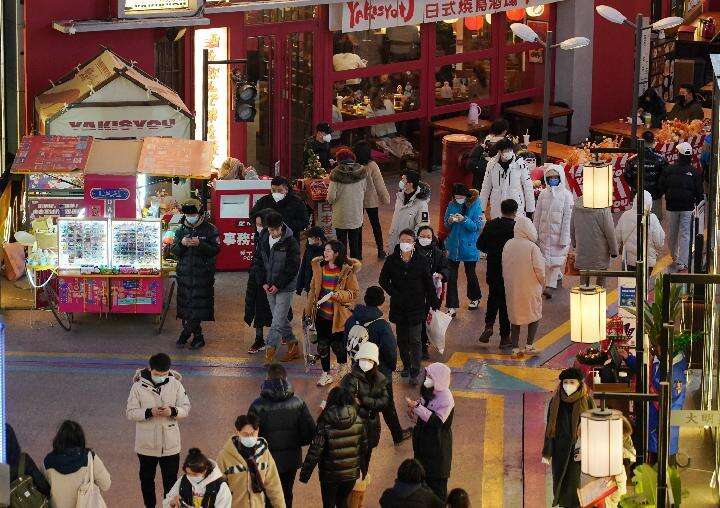 近日,北京持续推进企业复工复产,多措并举稳经济、促消费,各大商圈客流量增多,“烟火气”逐渐回归。图为游客在北京五棵松华熙Live游玩(12月25日摄)。新华社记者 张晨霖 摄