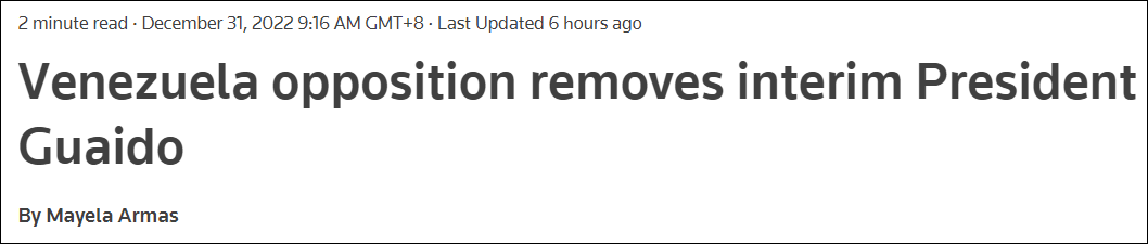 早在12月22日,委内瑞拉反对派就以较大的投票优势废除了瓜伊多领导的“临时政府”。但因遭到人民意志党的否决,该动议的有效性须在第二次投票后才能最终确定。