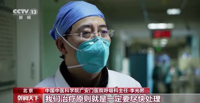 中国中医科学院广安门医院呼吸科主任 李光熙:我们治疗原则就是一定要尽快处理,早期的介入,中西医联用,才能让病人的病情尽快稳定、尽快出院。