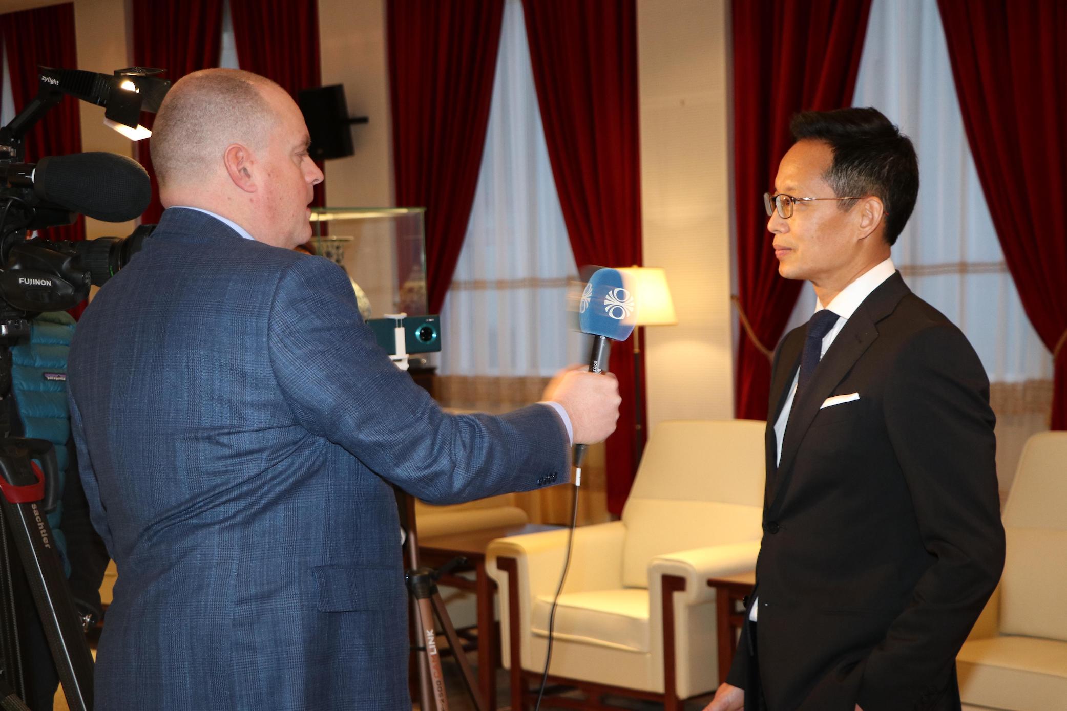 原题为《何儒龙大使接受冰岛国家广播公司采访》