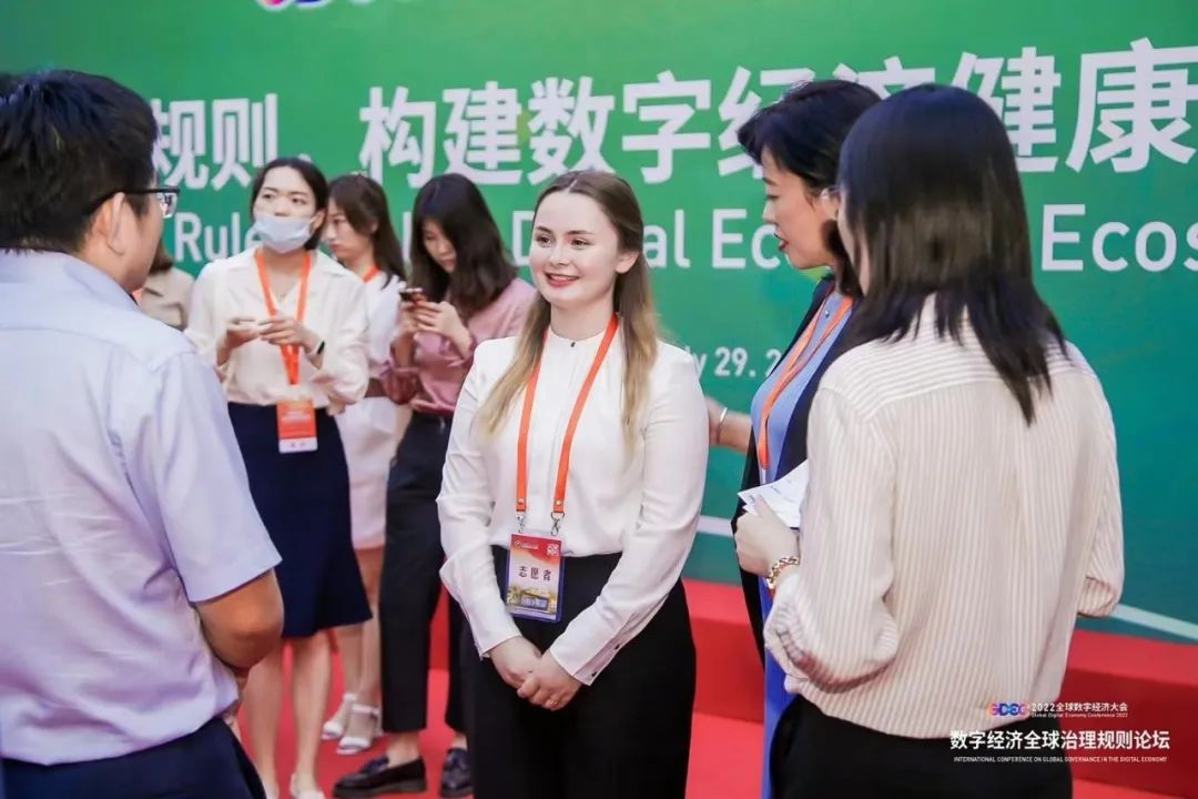 兰娜(右三)作为志愿者参加了2022全球数字经济大会“数字经济全球治理规则论坛”