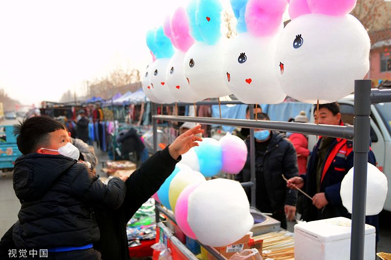 2023年1月8日,山东滨州,惠民县胡集镇上,“黄河大集”人声鼎沸,热闹非凡。