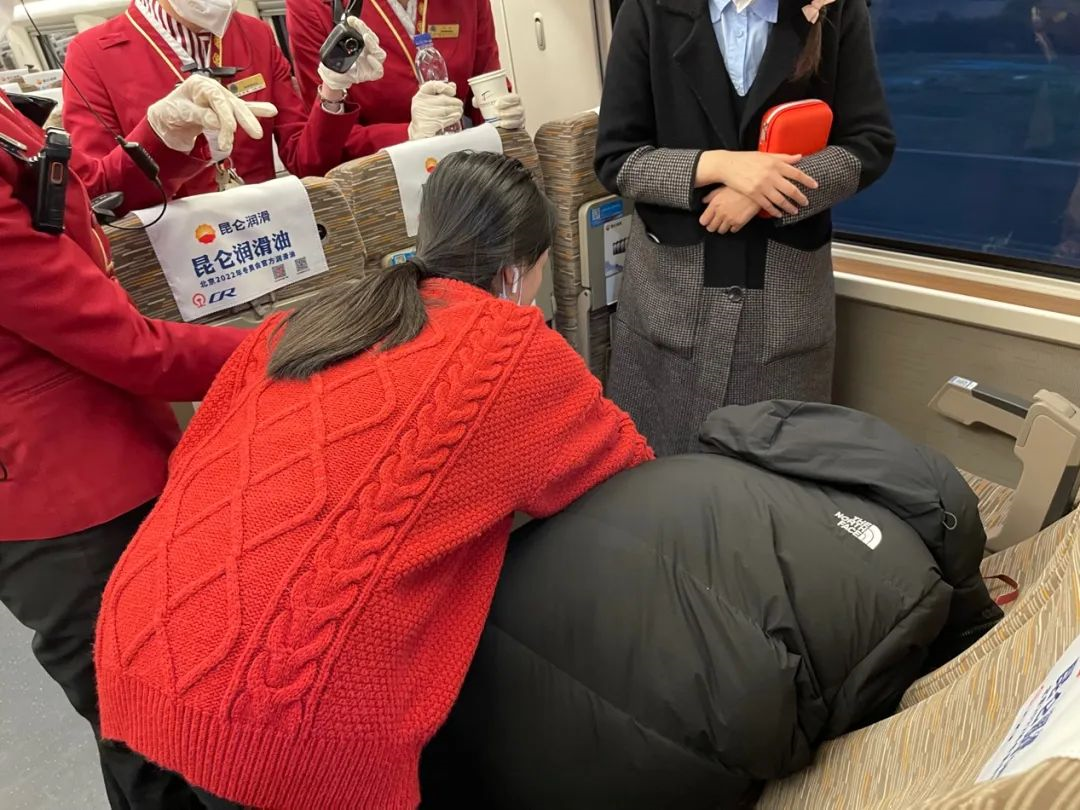 此时,正坐在2车厢的北京清华长庚医院整形外科医师廖雪吟赶紧起身,向列车员表明身份,立即飞奔向患者所在的12车厢。