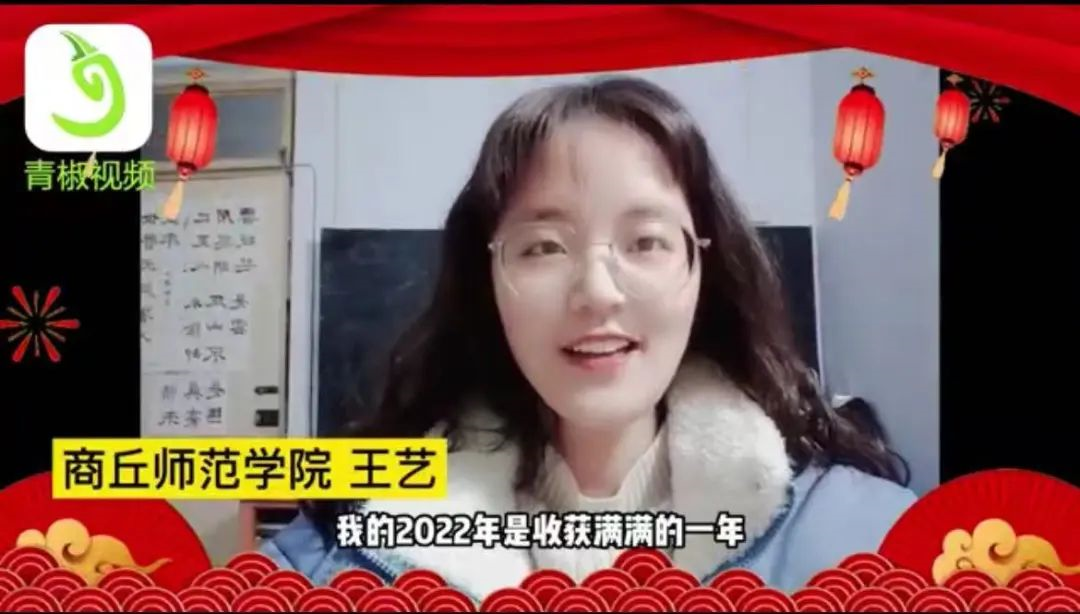 商丘师范学院的王艺说,这一年是收获的一年。她获得了全国大学生英语竞赛一等奖,获得国家励志奖学金,并且成功加入中青校媒青椒视频部,许多努力的事情都有了收获。