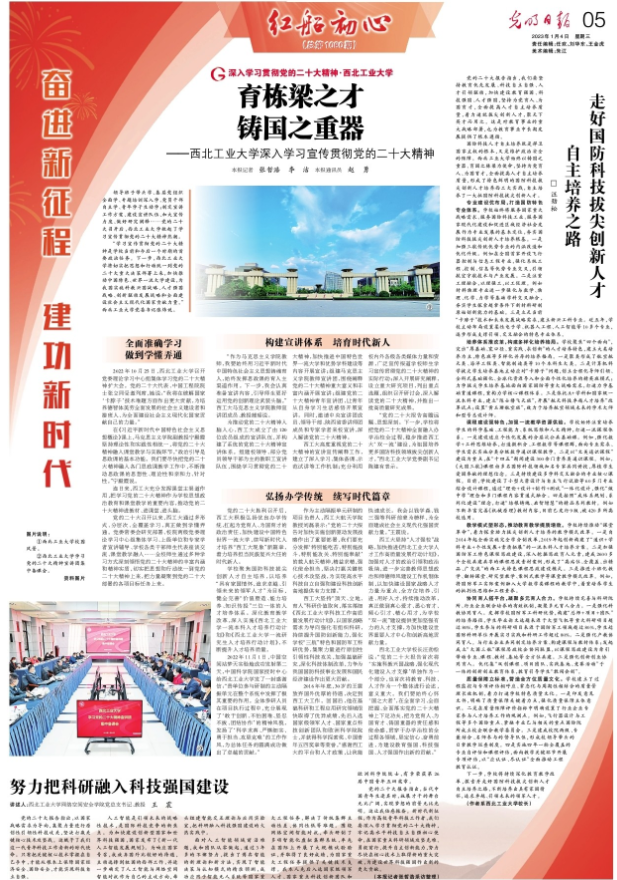 《育栋梁之才 铸国之重器——西北工业大学深入学习宣传贯彻党的二十大精神》