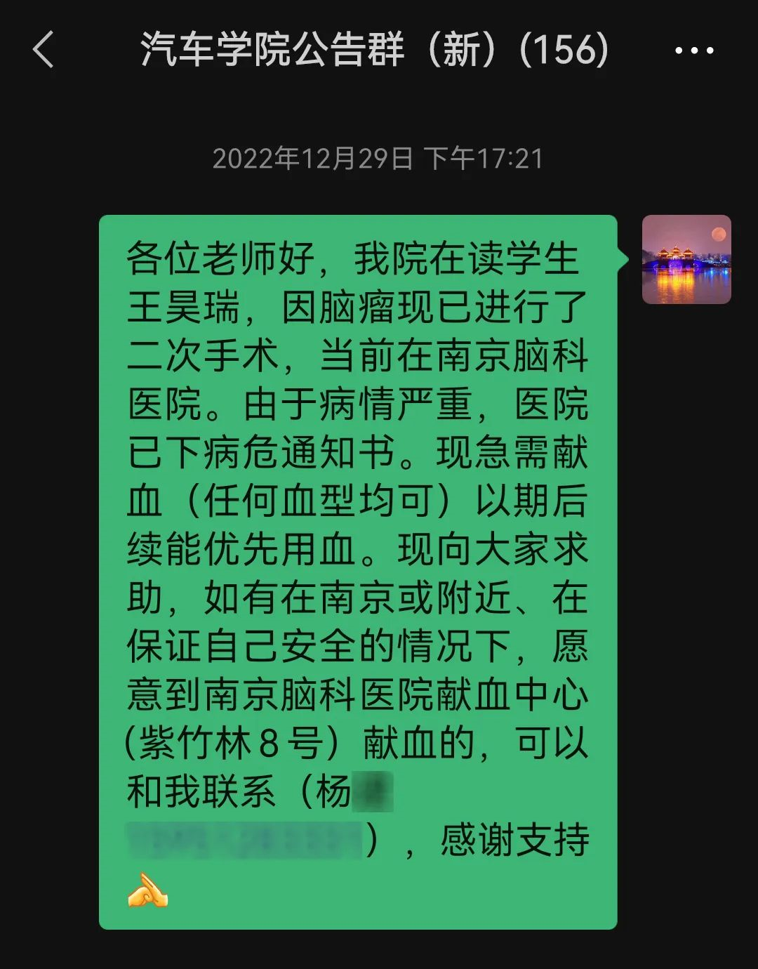 一则急需用血的求助信息