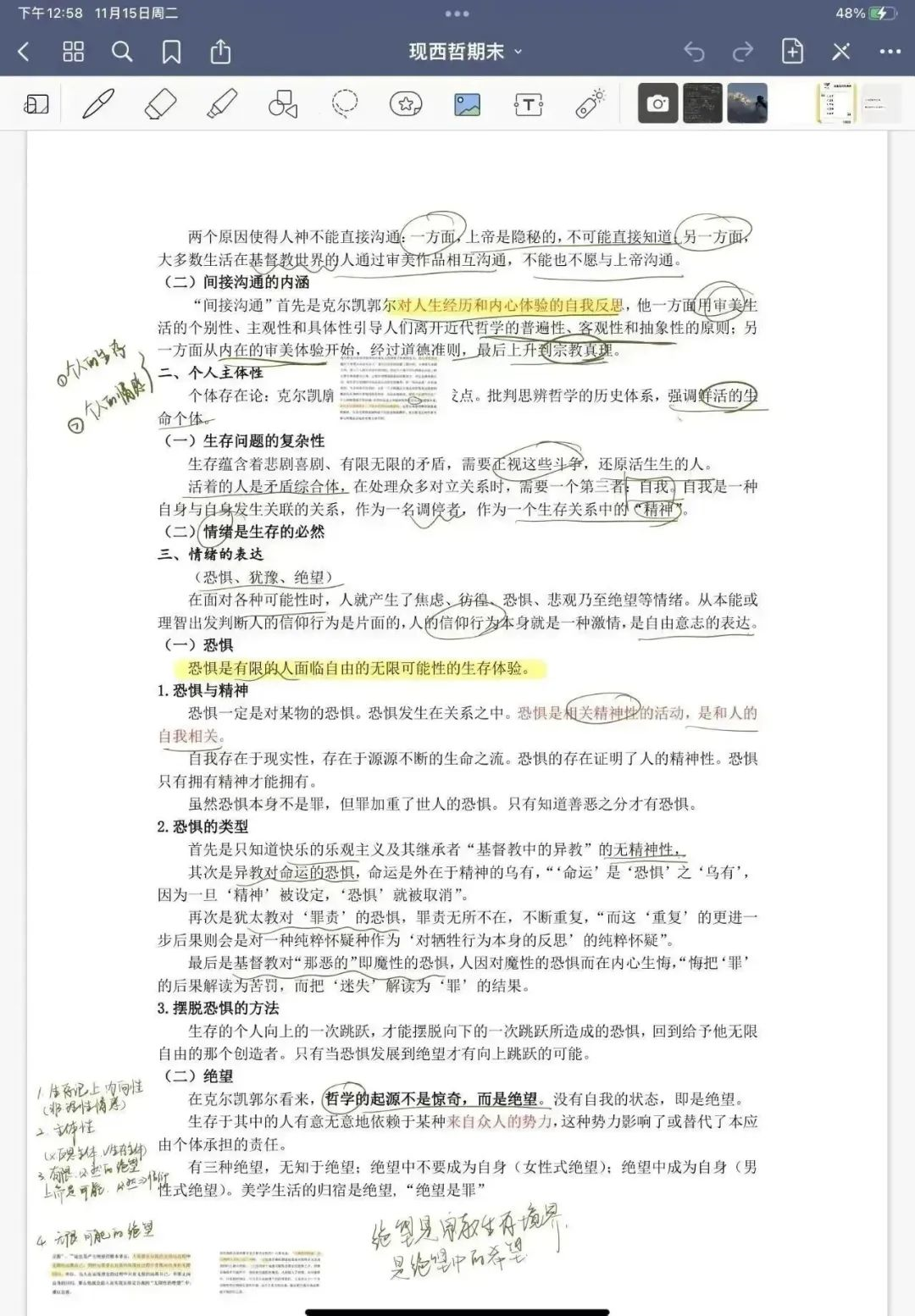 哲学其实与生活密切相关,“走到哪里,学到哪里。”俞静瑶善于利用碎片化时间积累知识,“青年大学习”打卡就是她另一个学习的宝库,当下的一些时政新闻,都被她悄悄记在了手机备忘录里。她不喜欢简单的机械化记忆,总是尝试用纸笔整理出问题的层次和相应关键词帮助自己理解,完成深层记忆。期末周针对一门课的复习,她就会写满20到50页的A4纸,最多的时候一学期有11门考试,一次期末考攒下的A4纸张比一本书都厚。