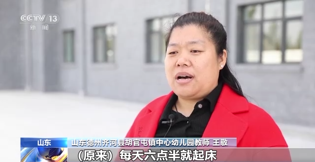 山东德州齐河县胡官屯镇中心幼儿园教师 王敬:原来每天六点半就起床,经历一个小时来到学校,现在有了周转房之后,为我解决了路上的后顾之忧。不管是刮风还是下雪,再也不用担心路上的交通安全 。