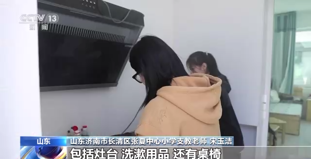 山东济南市长清区张夏中心小学支教老师 宋玉洁:真的没有想到环境会这么好,包括灶台,还有洗漱用品,桌椅什么的,都准备得非常好。