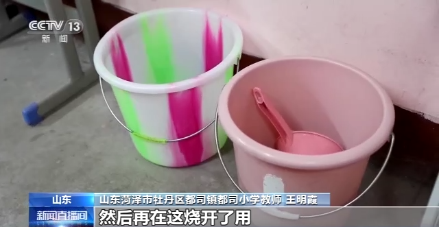 山东菏泽市牡丹区都司镇都司小学教师 王明霞:如果我们用水的话,需要用水桶从一楼提上来,然后再烧开了用。