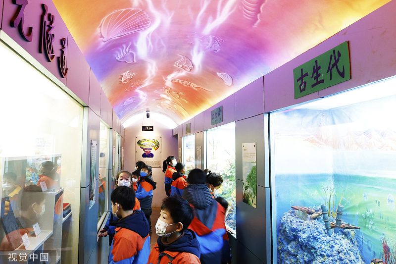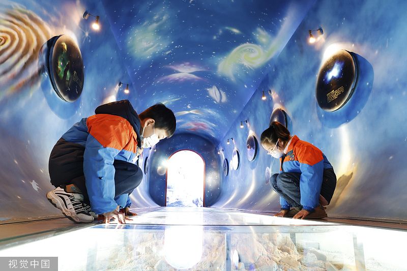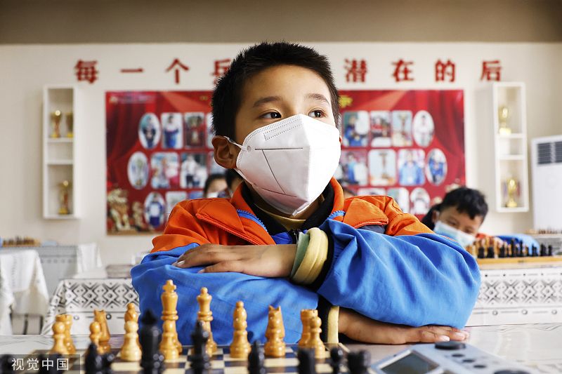 2023年1月12日,江苏宿迁,在泗洪县第一实验学校,托管儿童进行学习、游戏等活动。