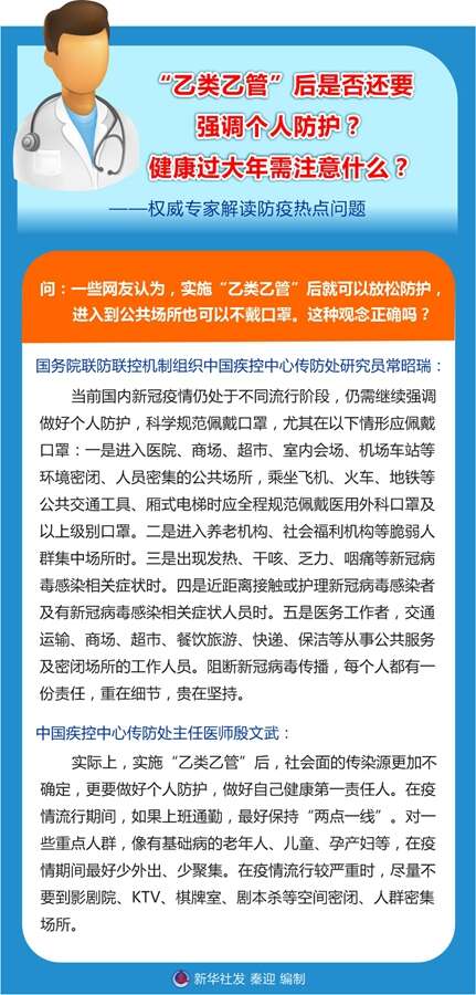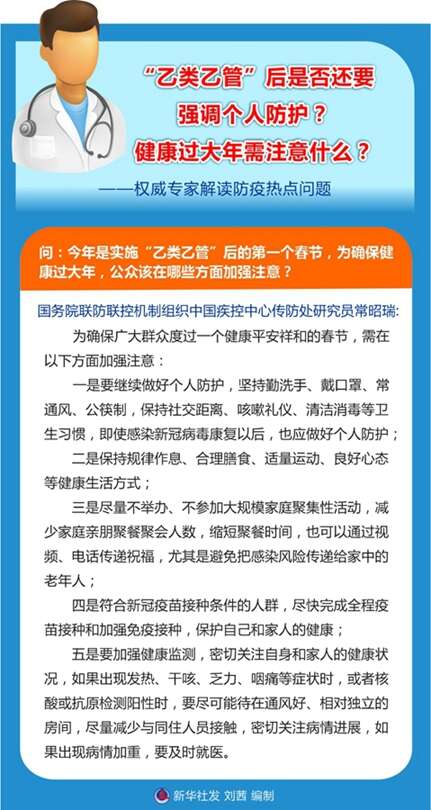 新华社北京1月13日电 题:“乙类乙管”后是否还要强调个人防护?健康过大年需注意什么?——权威专家解读防疫热点问题