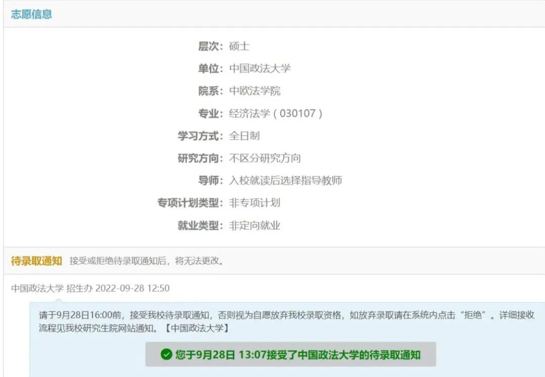保送至中国政法大学经济法学专业
