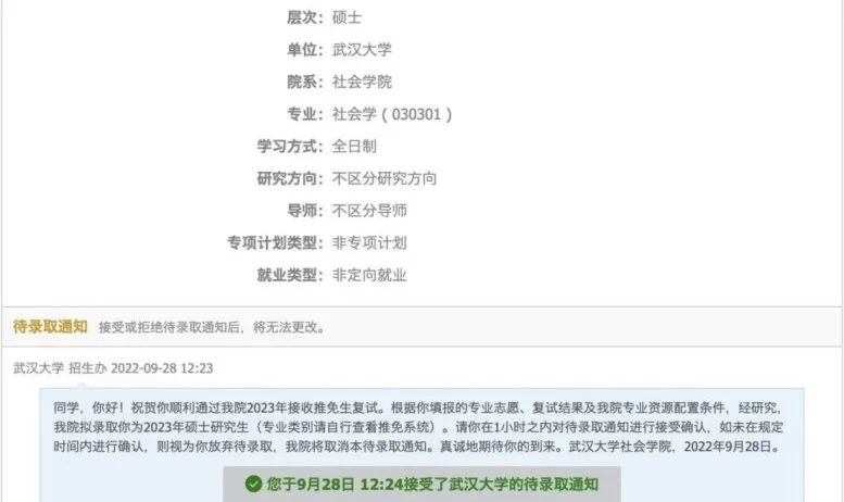 保送至武汉大学社会学专业