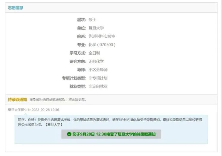 保送至复旦大学化学专业