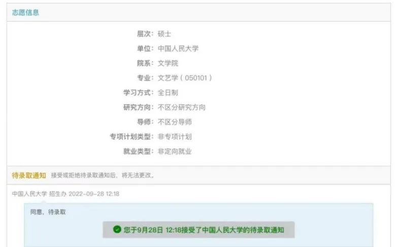 保送至中国人民大学文艺学专业