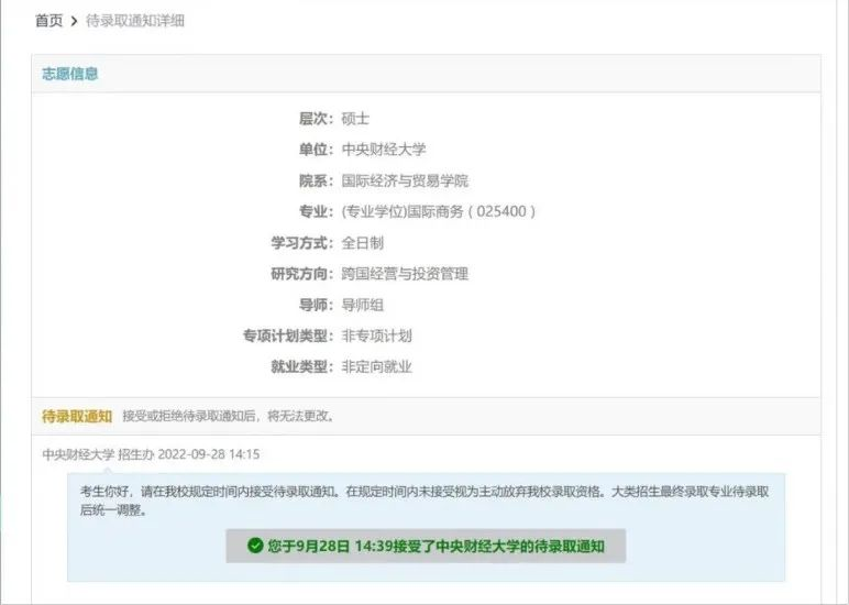 保送至中央财经大学国际商务专业
