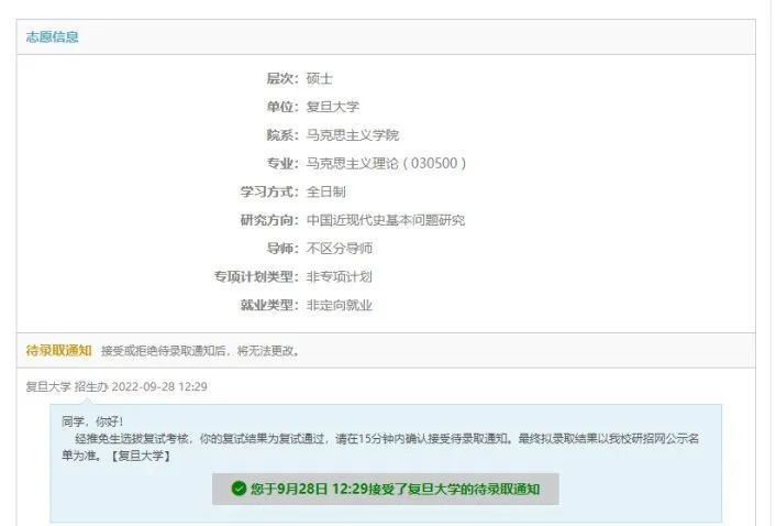 保送至复旦大学马克思主义理论专业