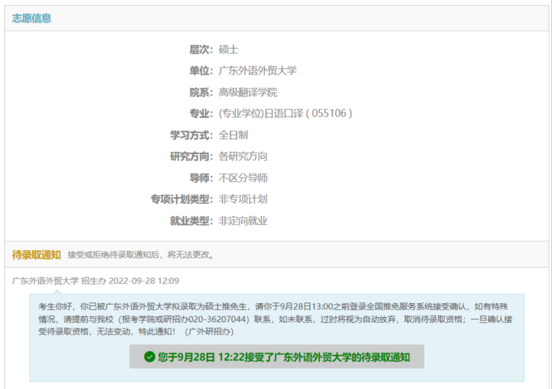保送至广东外语外贸大学日语口译专业