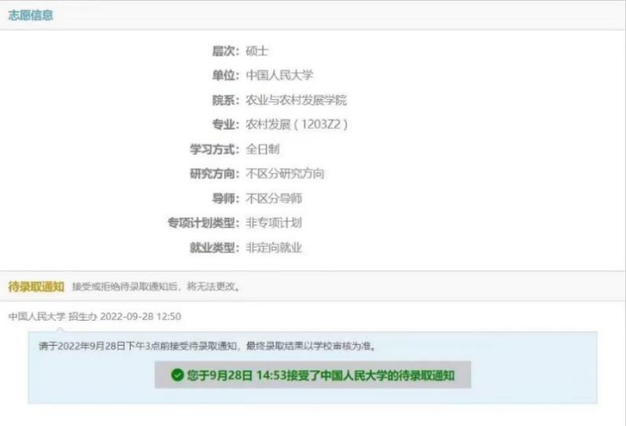 保送至中国人民大学农村发展专业