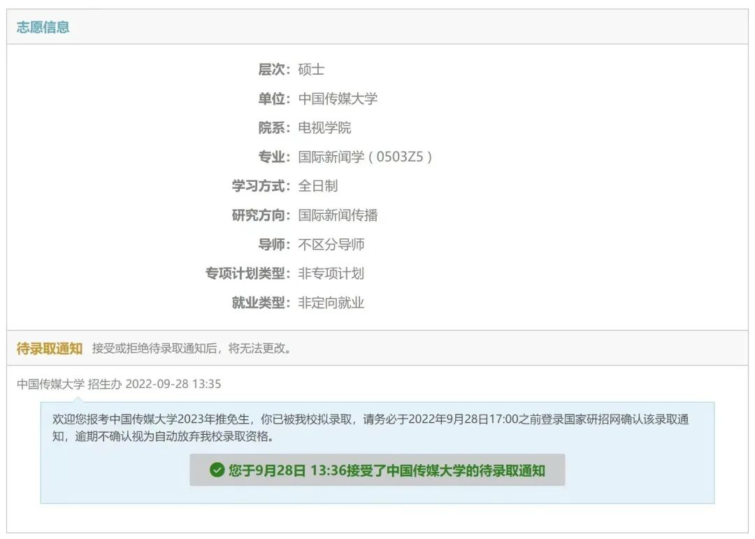 保送至中国传媒大学国际新闻学专业
