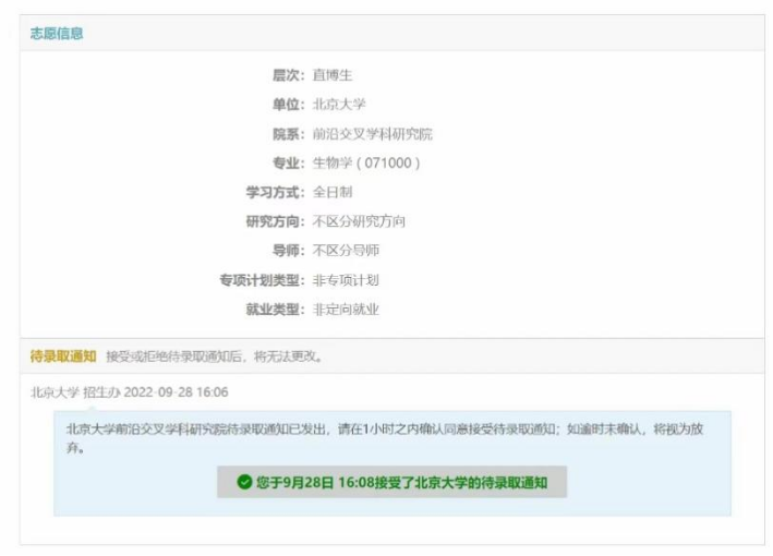 保送至北京大学生物学专业
