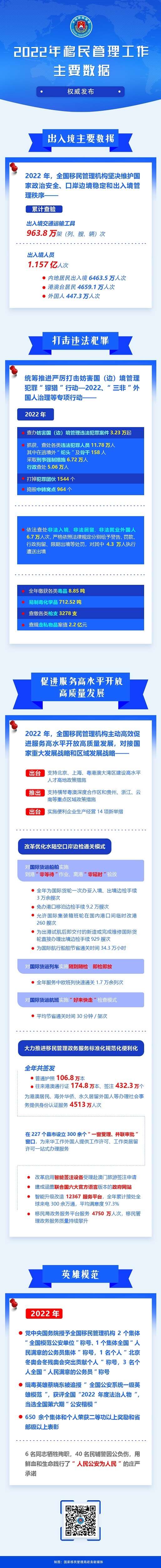 中国青年报客户端北京1月17日电(中青报·中青网记者 何春中)今天上午,国家移民管理局新闻发言人、政策法规司司长林勇胜在国家移民管理局举行的发布会上通报了2022年移民管理工作主要数据。一图读懂,速来了解!