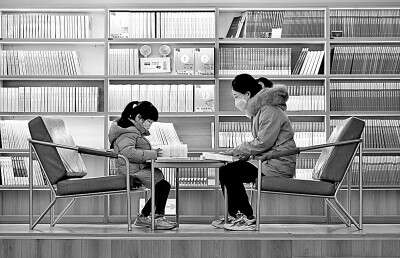 1月2日,在河北省邯郸市邯郸书城,小朋友在家长的陪伴下阅读图书。郝群英摄/光明图片