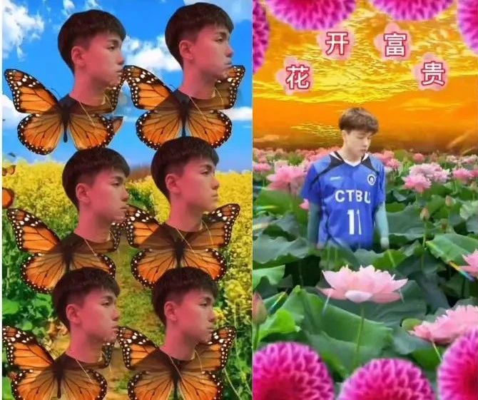 在几朵大花中,男生大头照缓缓移出