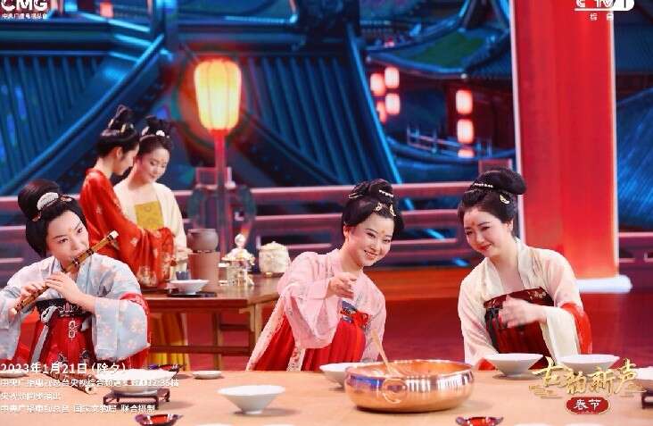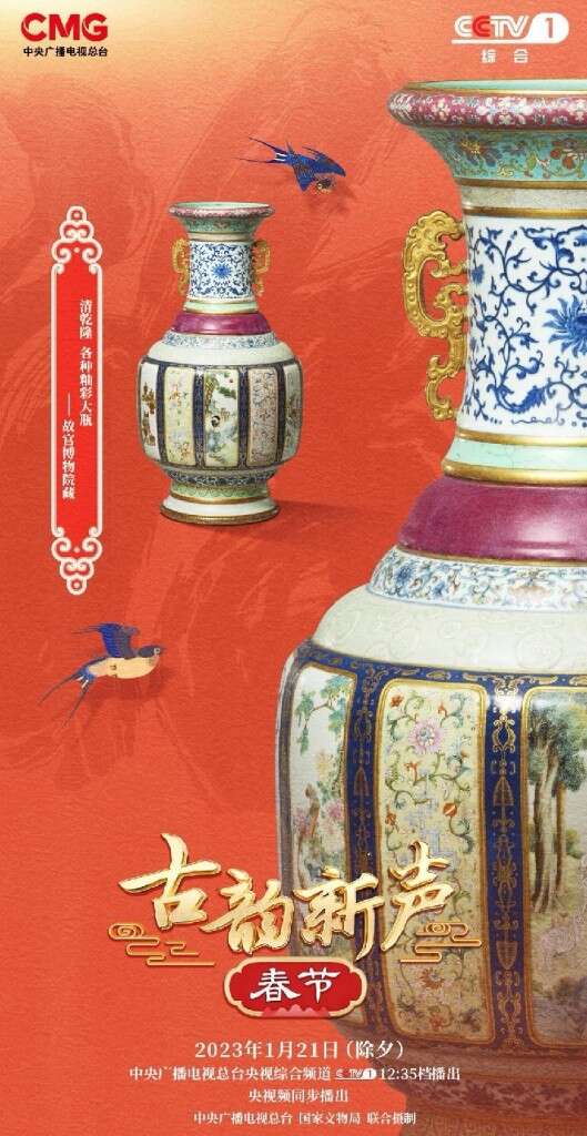 《古韵新声》春节节目《古韵新声》春节节目在中,70余件珍贵文物将带领观众跨越时间长河,感受春节喜庆祥和的节日氛围:唐彩绘陶十二生肖兔俑,像兔子般灵敏聪慧、活力满满,为中国百姓开启癸卯兔年新篇章;唐人京畿瑞雪图纨扇面和清九九消寒图,用“瑞雪兆丰年”“数九”和“画九”,在漫长冬日怀抱着消寒迎春的梦;清乾隆各种釉彩大瓶,也被誉为“中华瓷王”,浓缩了一部中国瓷器史,瓶身包含着多种吉祥寓意的图案,堪称“新春吉祥话大词典”,让当代人感受到古人对美好生活的诚挚祈盼;距今1400多年的北朝剪纸,其团花纹造型寓意着团圆美满;龙和凤作为中国古老的祥瑞图腾,在西汉透雕龙凤纹重环玉佩中,游龙挺胸翘尾,凤鸟回头凝望,完美诠释了龙凤呈祥和谐圆满……