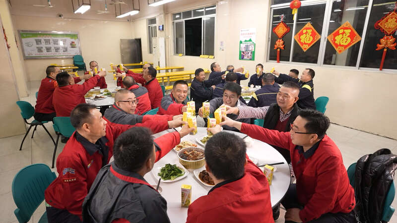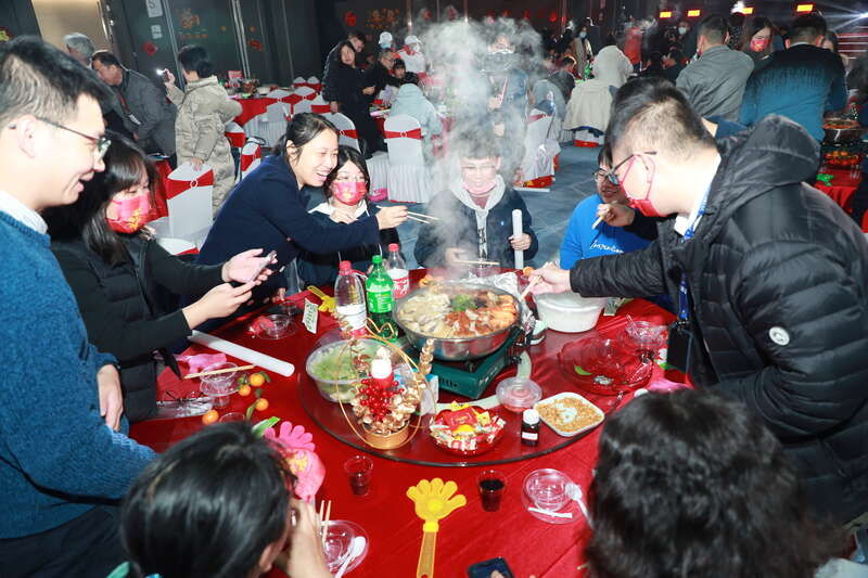 中国青年报客户端讯(中青报·中青网记者 林洁)临近兔年新春,广州开发区举行职工春节联欢晚会。时隔3年,“千人饺子宴、万人大盆菜”新春活动回归,300多名职工一起吃盆菜、包饺子,看节目、抽大奖,热热闹闹迎新年。