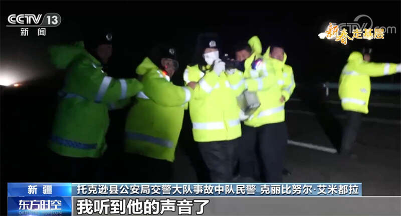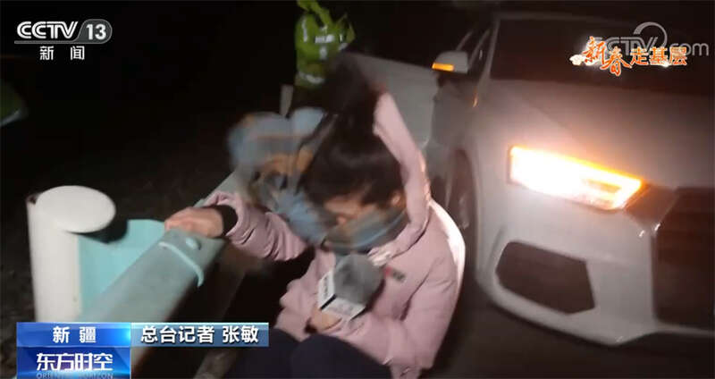 这次匆忙的见面,巴合提亚尔和妻子没来得及多说一句话,各自又赶往下一个事故现场。这时已经是夜里了,气温骤降,风力也越来越大,路上还有不少滞留的人和车。