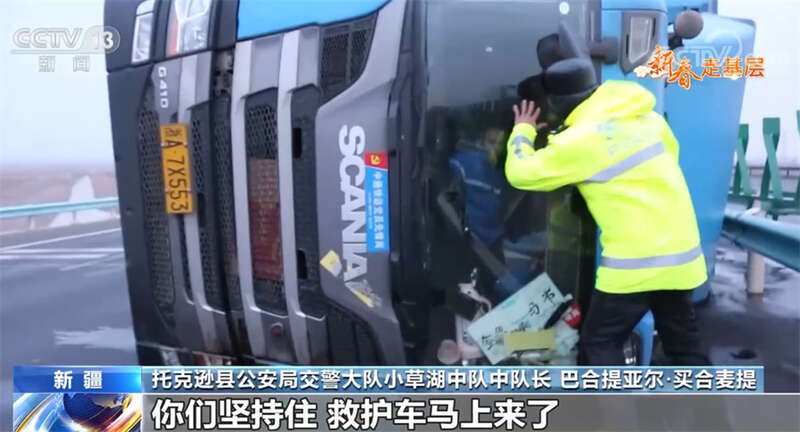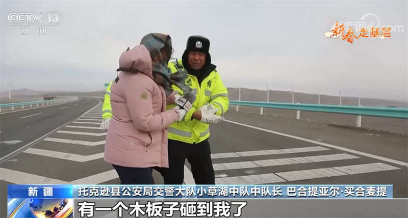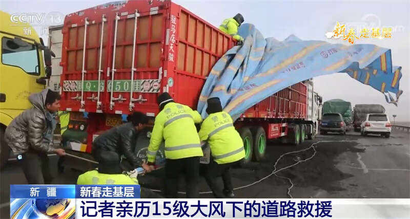 央视网消息:新疆三十里风区位于G30连霍高速公路三个泉至小草湖段,这里是南北疆出入疆的必经之路,由于处在天山山脉的一个豁口处,地势由高到低,冷空气从这里突破天山防线后就会顺势带来大风,三十里风区也因此得名。春节前,这里又刮起了10级以上大风,不少赶着回家过年的人因此滞留,为了确保他们的安全,新疆吐鲁番市托克逊县公安局交警大队小草湖中队的交警连夜上路处理事故、疏导被困人员。1月20日的《新春走基层》,我们就跟随记者一起去新疆托克逊县的三十里风区看一看,体验一下15级大风天里的救援。