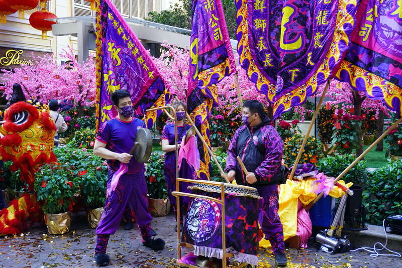1月22日,香港湾仔区利东街,本地表演者带来传统舞龙舞狮表演,锣鼓声让现场年味十足。