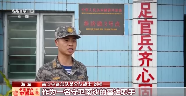 南沙守备部队某分队战士 刘祥:寸土不丢,寸海不让。作为一名守卫南沙的雷达职手,就是要做到海上不放过一棵草,空中不放过一只鸟,不让眼前的这片海空受到任何侵犯。我觉得,这就是送给祖国和远方亲人最好的春节祝福。