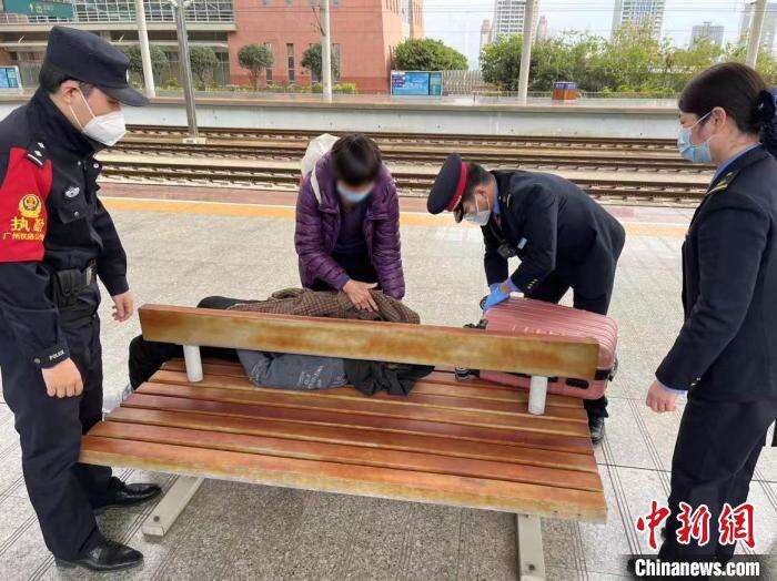 接警后,韶关站派出所立即联系120医疗力量,并指派当日执勤民警,联合车站客运值班员到场先行处置。14时20分,列车到达韶关站。发病旅客已失去意识,民警立即和客运值班员一起上前将该旅客搀扶到站台长凳处,等待120医护人员到场。
